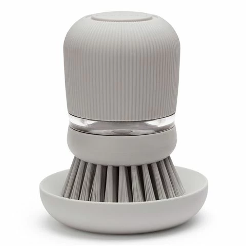 With this Soap Dispensing Dish Brush doing the dishes is easy! Push the button to release the perfect amount of dishwashing liquid and brush away. The durable nylon bristles are sturdy enough to scrub, but soft enough not to scratch. All done? Keep your brush handy in its smart stand.