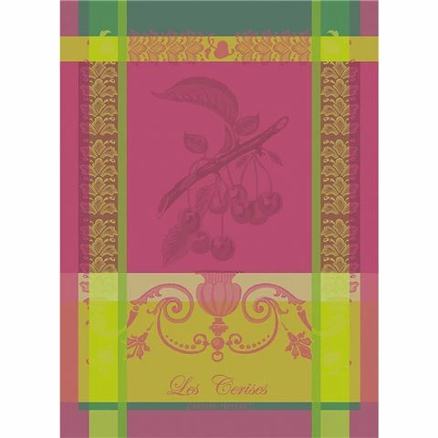 The Cerises Griotte Tea Towel in a vibrant summer palette has woven jacquard squares celebrating the cherry as the perfect deep pink summer fruit.