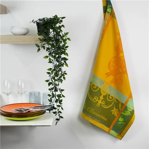 This attractive Garnier-Thiebaut’s Les Clementines Safran Kitchen Towel gives this humble citrus fruit a regal makeover. Crafted in 100% pure cotton damask and made in France, it brings French style into your kitchen.