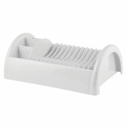 Practical and stylish plate drainer designed by Guzzini Lab. that can be used anywhere small in size but with great capacity, it can hold up to 14 plates, including separate comportments for utensils. It is compact and easy to be stored.