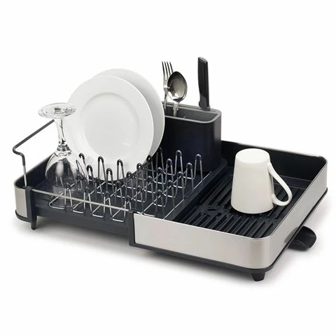 Joseph Joseph – Extend Steel Dish Rack Grey smart dish rack features a 2-part sliding tray that allows you to easily adjust the size of your draining space when you need more room.