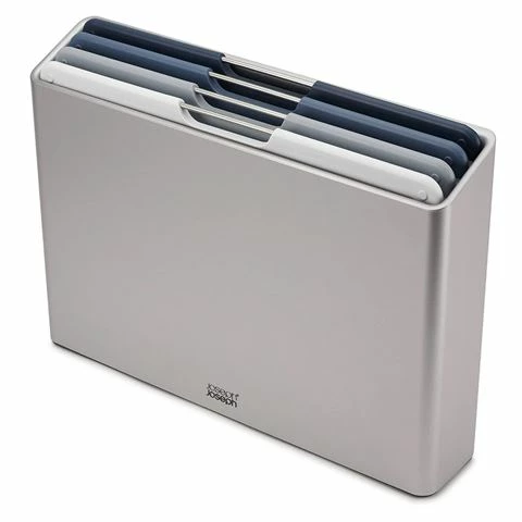 Joseph Joseph Sky Folio Large Chopping Board Set four colour-coded chopping boards comes with a silver sleek slimline case. A beautifully organised set for your worktop.