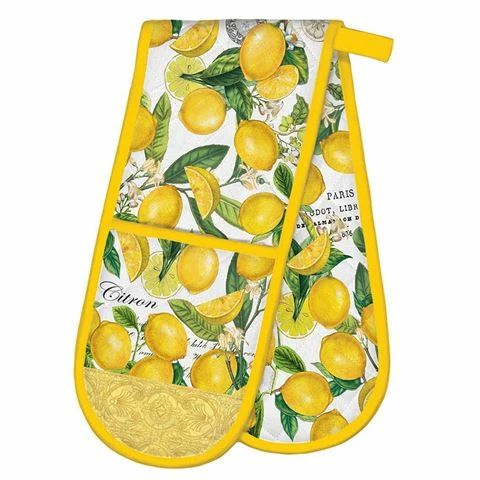 Discover the Michel Design Works Lemon Basil Collection, which encompasses everything from tea towels to lavish salad bowls, all created to put a little zest in your life. A beautiful way to brighten up your kitchen, this generously sized quilted double oven glove is supplied with a loop for hanging.