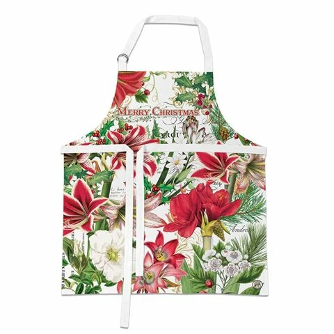 Showy amaryllis with classic Christmas holly and pine highlight a lush collection of winter florals.