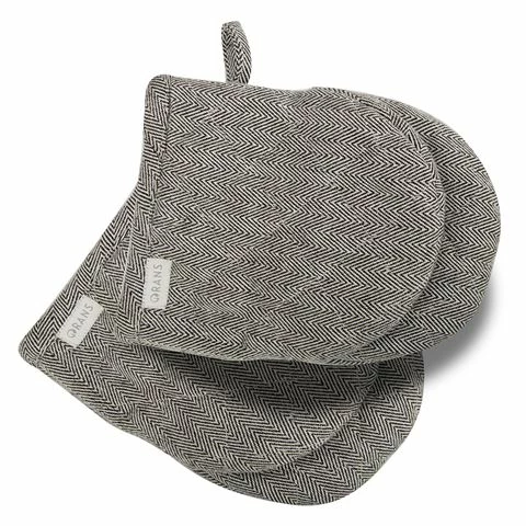 Made from 100% premium cotton, this padded Herringbone Mini Glove Set will protect your hands when handling hot pans and baking dishes. They’re decorated with a chic V-shaped pattern to bring a touch of classic charm to your kitchen, and both mitts feature a convenient loop, so when you’re done, you can hang your gloves from a hook in your kitchen.