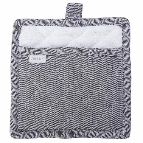 Practical, durable, and classically designed, the Herringbone Pot Holder from Rans will see you through every baked, braised, and broiled dish. Made from 100% premium cotton, this stylish kitchen accessory in on trend herringbone boasts a soft interior that allows you to handle hot dishes with ease.