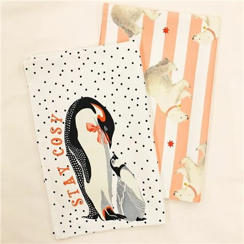 A gorgeous set of two Yvonne Ellen Tea Towels featuring super cute mother and baby penguins and cuddley polar bears, just in time for Christmas! Guaranteed to add a splash of colour and charm to any kitchen.